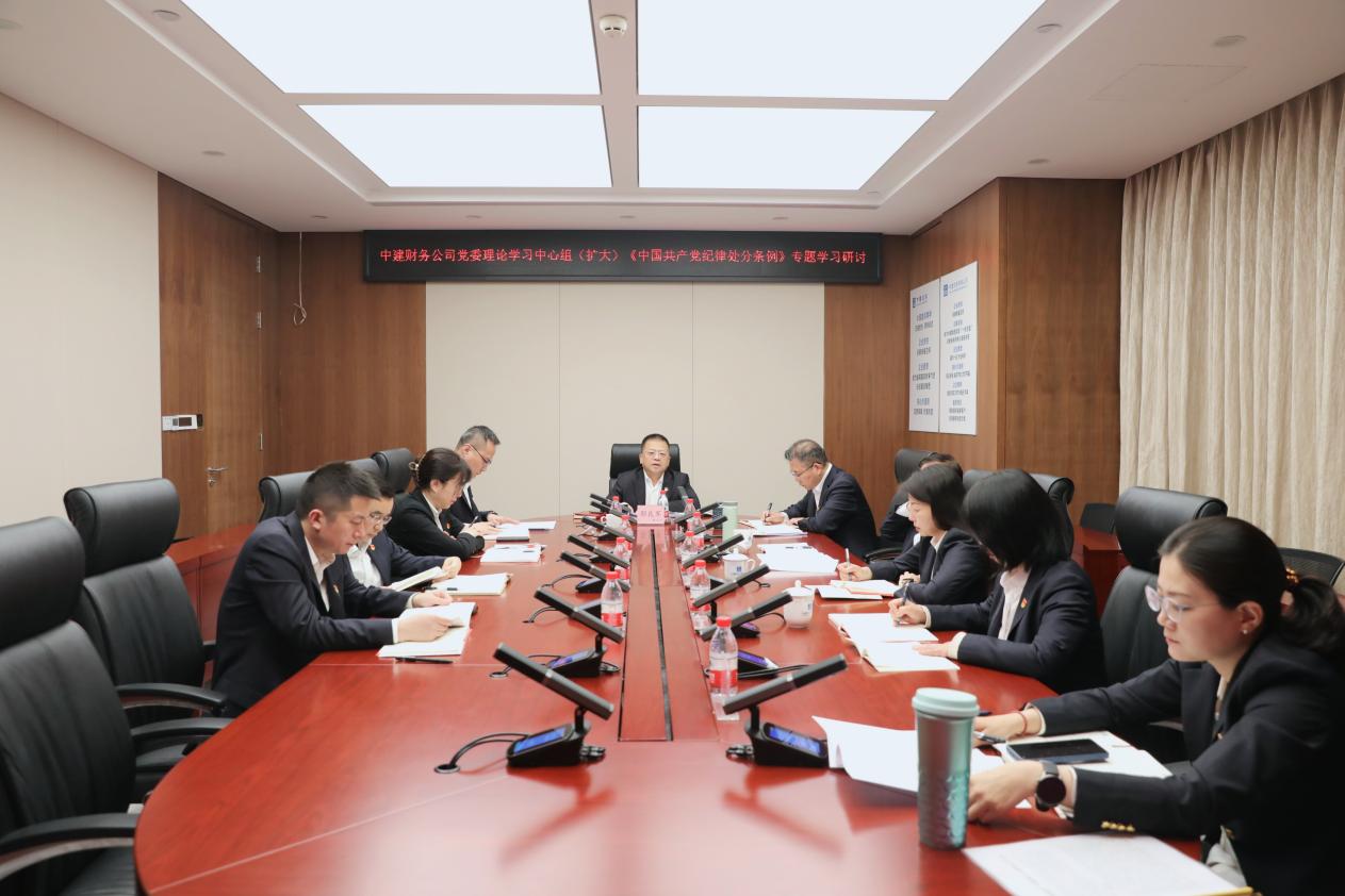 按照中建财务公司党纪学习教育工作安排,4月29日,公司党委理论学习中心组专题学习新修订的《中国共产党纪律处分条例》(以下简称《条例》),深刻感悟习近平总书记关于推进党的自我革命、健全全面从严治党体系、全面加强党的纪律建设的新思想新论断新要求,进一步理解《条例》的主旨要义和规定要求,准确掌握党的政治纪律、组织纪律、廉洁纪律、群众纪律、工作纪律、生活纪律要求。公司党委书记、董事长鄢良军主持并讲话,党委班子成员结合学习情况、工作职责,谈认识、谈体会、谈思路、谈落实。公司其他领导,相关部门负责人列席会议。